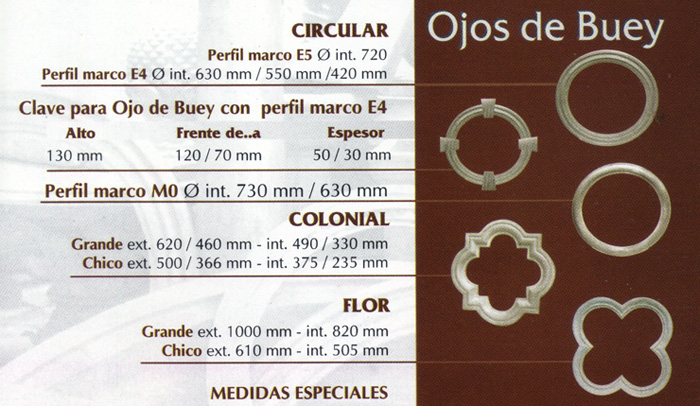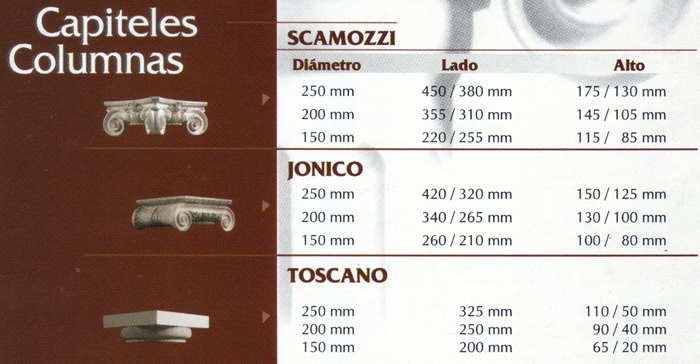 Accesorios - ménsulas, capiteles, columnas, pilastras, balaustres, ojos de buey, etc.